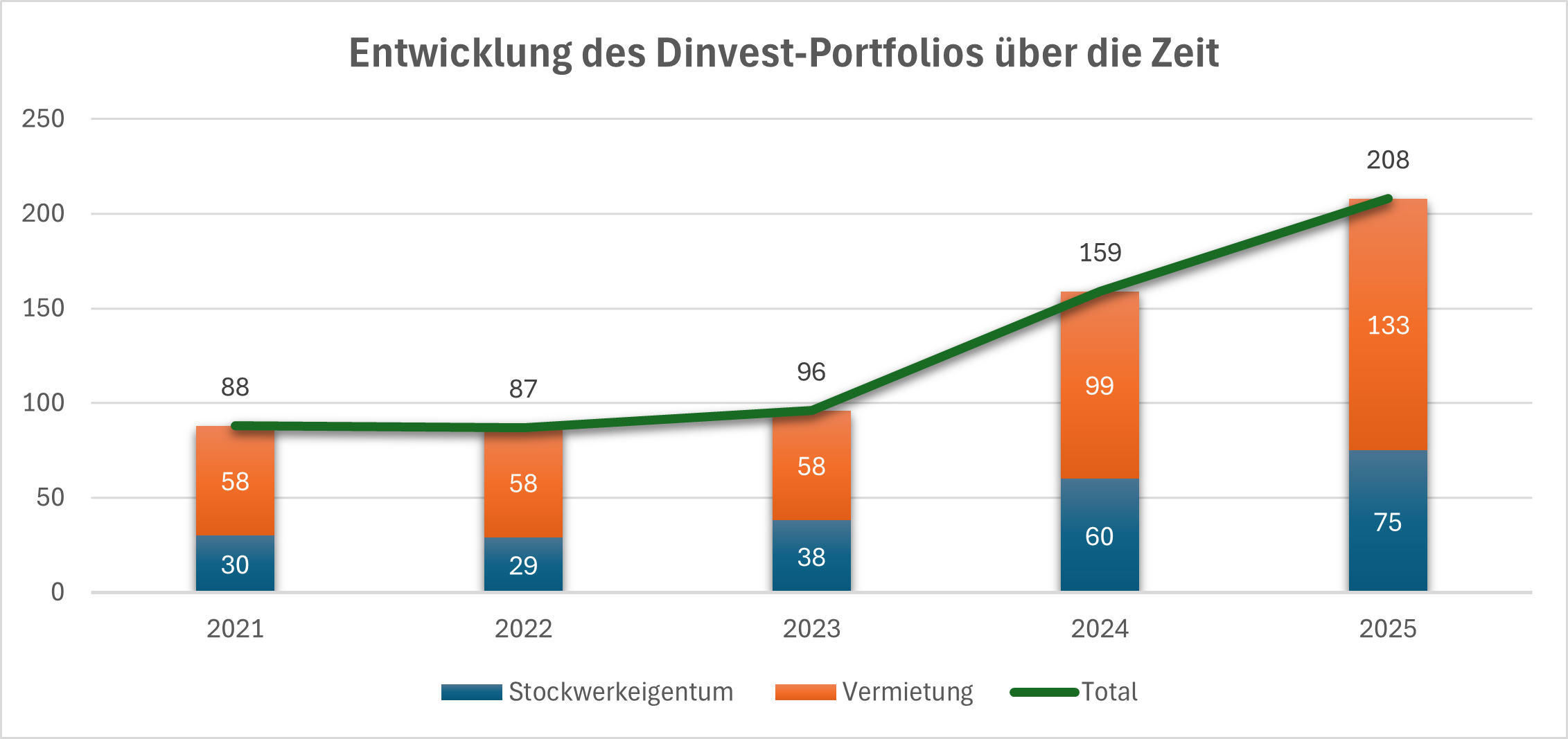 Wir haben auch unsere Organisation stetig angepasst. Dies Anpassungen wurden nötigt durch die Integration der Mitarbeiter/innen der OS Immobilien und der Terranova Immobilien. Ausserdem haben wir in die Stärkung unserer Managementorganisation investiert – so führt Wachstum zu besserem Service und nicht zu mehr Komplexität. Innerhalb von zwei Jahren hat Dinvest seinen Immobilienbestand verdoppelt und gleichzeitig den Service für Eigentümer, Mieter und Stockwerkeigentümer verbessert.